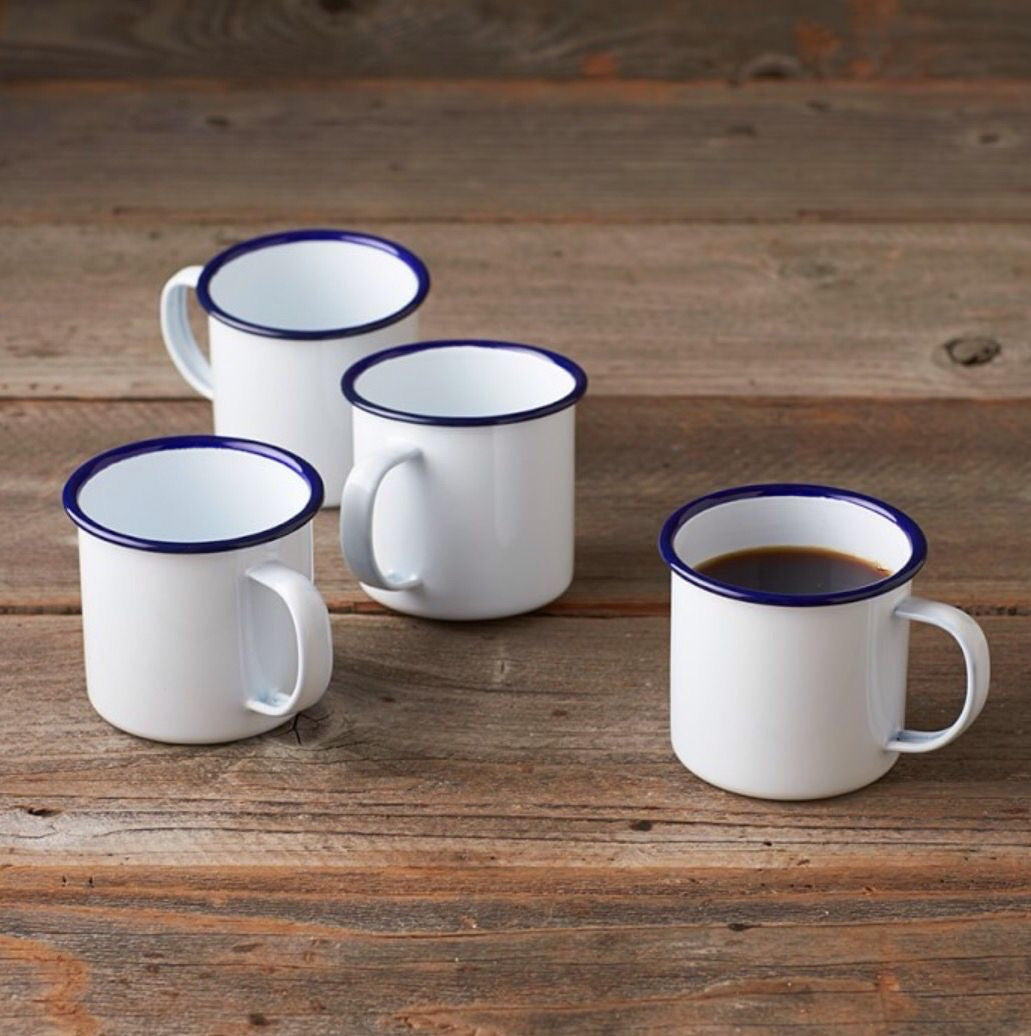 - Timeless Aesthetic The classic white finish with a contrasting blue rim adds a nostalgic, Americana style to any setting, from a rustic campsite to a modern kitchen.