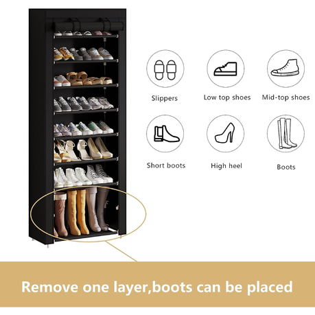 - Ample Storage: This 9-tier rack is spacious enough to hold approximately 27 pairs of shoes. The adjustable layers allow you to remove a shelf or two to easily accommodate taller items like boots or larger accessories.